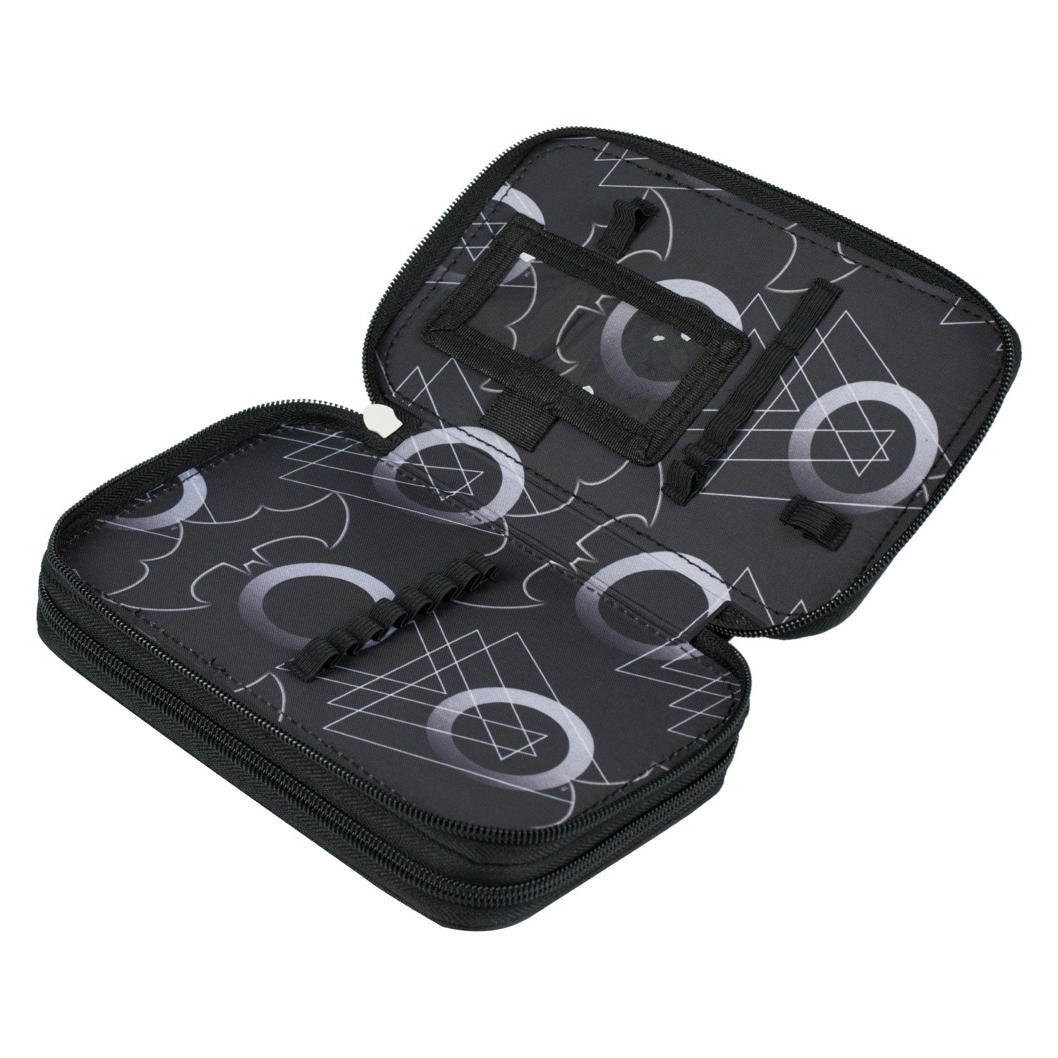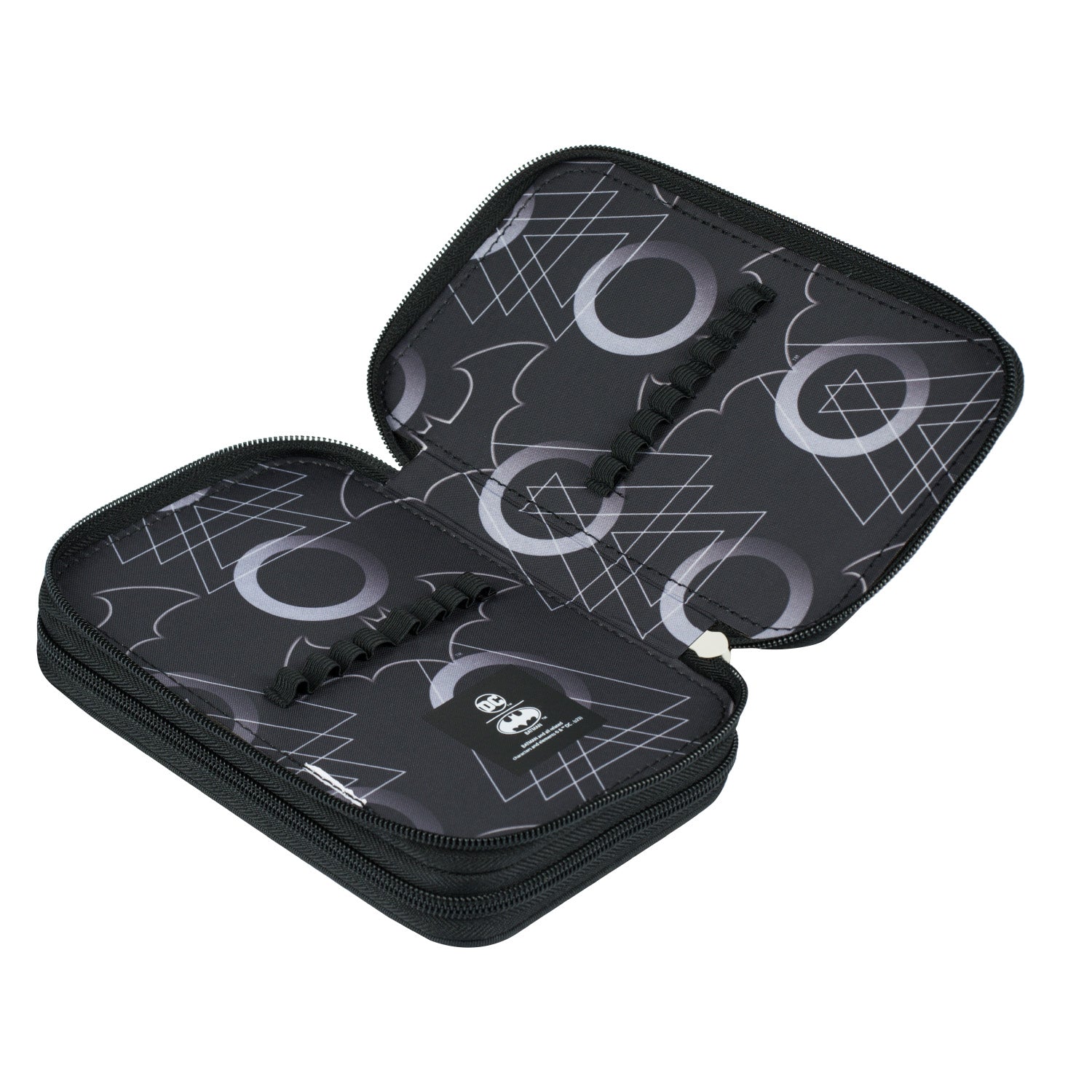 Dwukomorowy piórnik z motywem ulubionego Batmana zapewni małym uczniom wystarczająco dużo miejsca na wszystkie przybory szkolne oraz osobiste skarby.