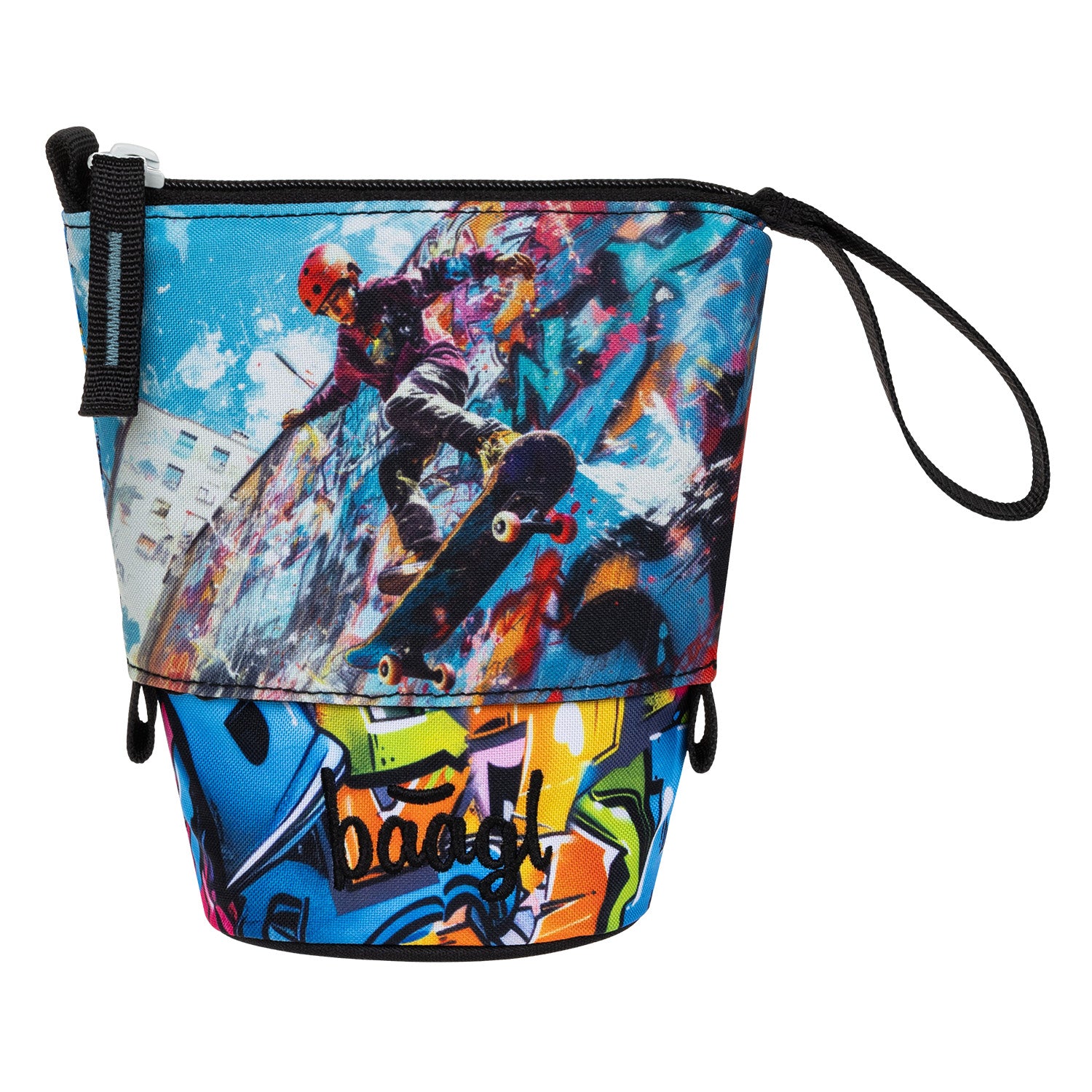 Stylowe etui, stworzone nie tylko z myślą o miłośnikach skateboardingu, które łatwo przekształcić w stojak — idealne do organizacji przyborów szkolnych.