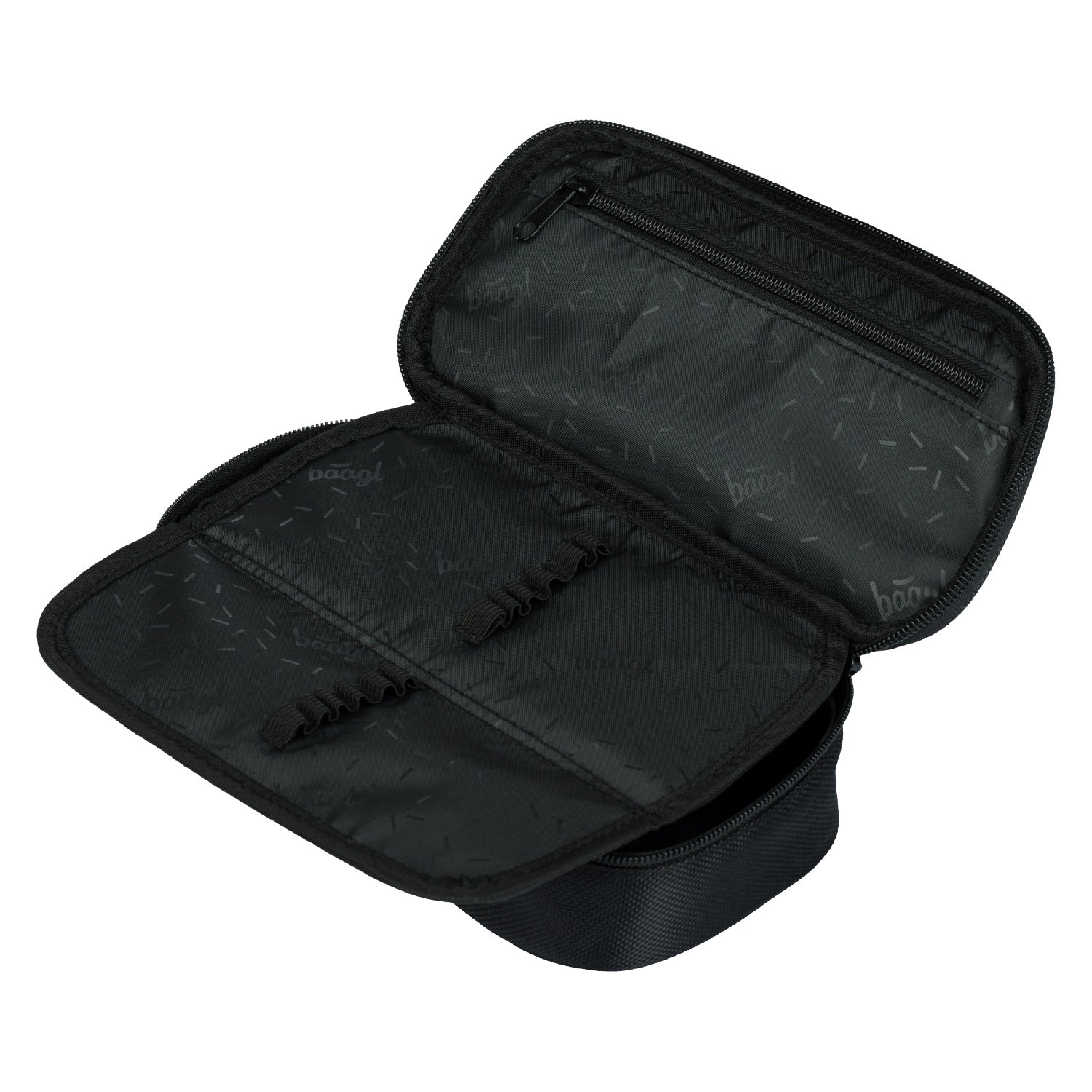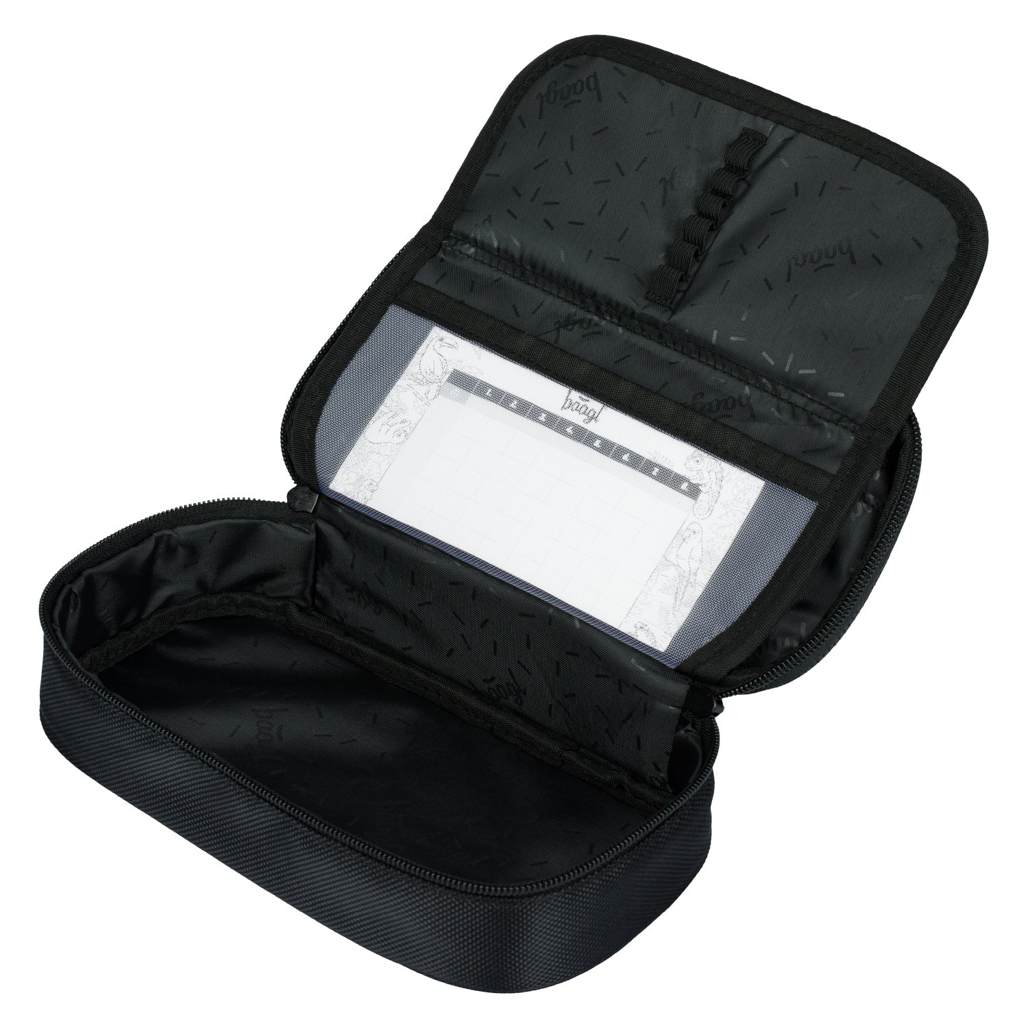 • Kompaktowy piórnik na zamek błyskawiczny z pojemną główną komorą i podwójną, rozkładaną klapką oferuje dużo miejsca na przybory do pisania oraz drobiazgi.