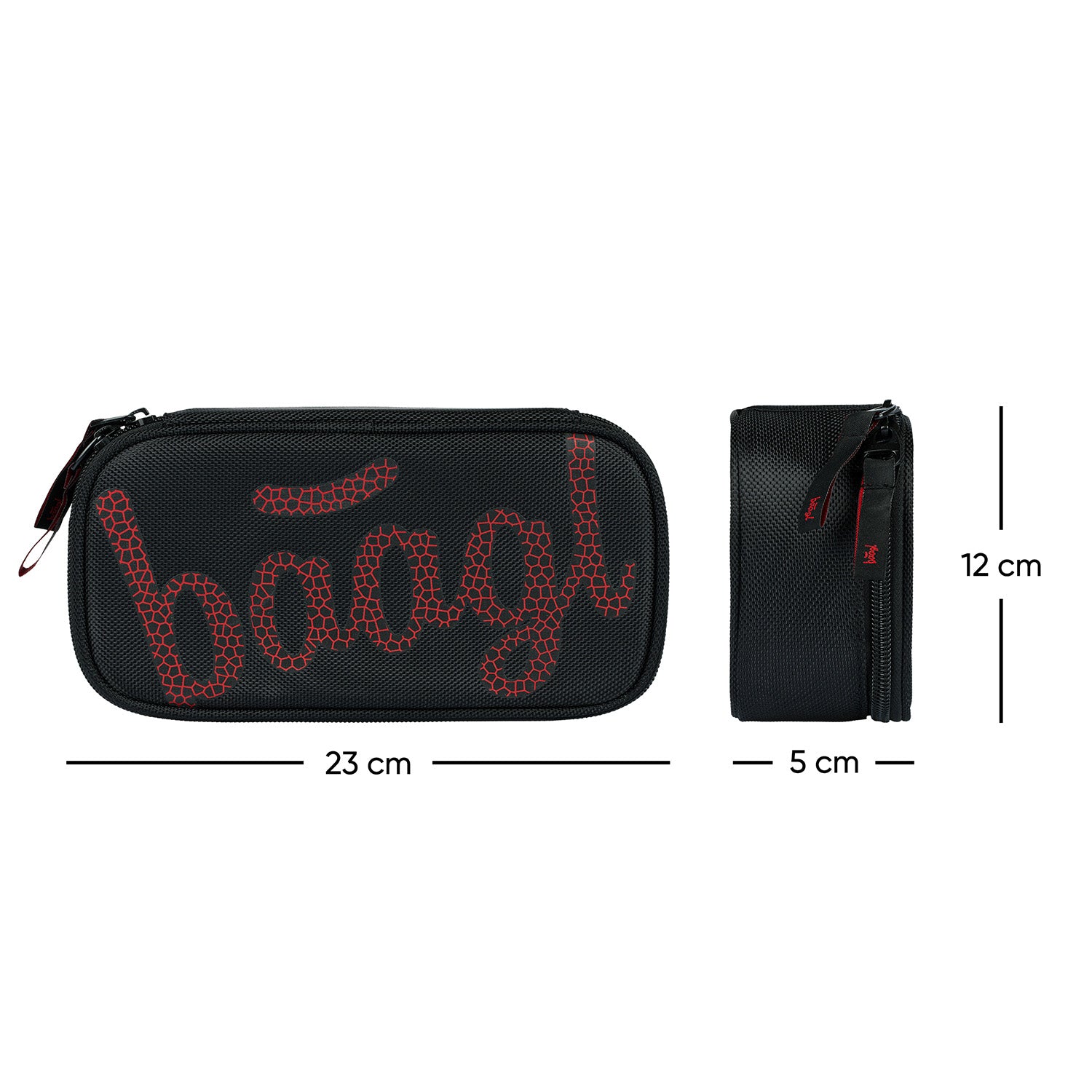 Czarny piórnik z czerwonym logo BAAGL ma podwójną klapkę i jest zamykany na jeden zamek. Polecamy dla dzieci od 3. klasy szkoły podstawowej.
