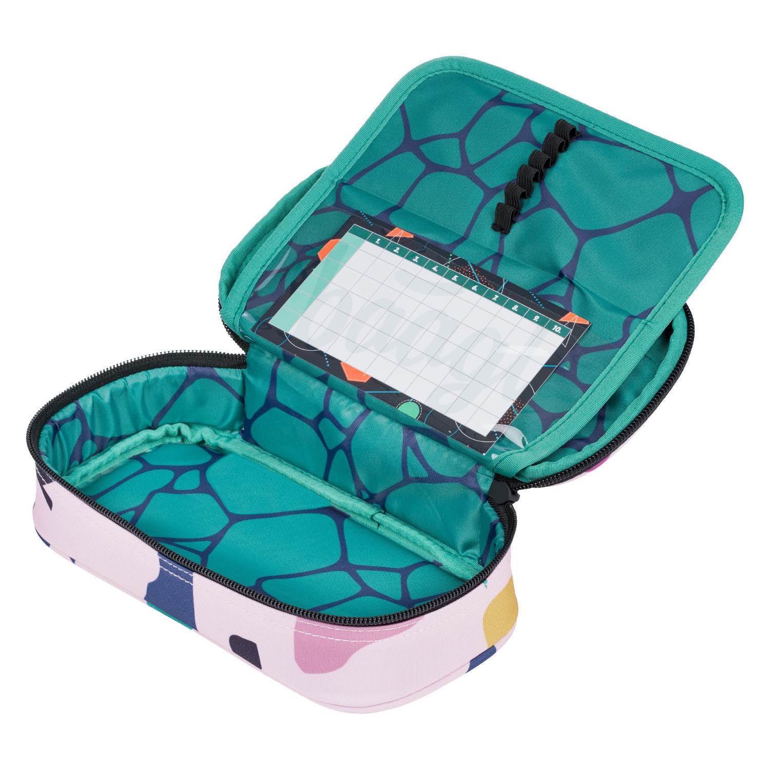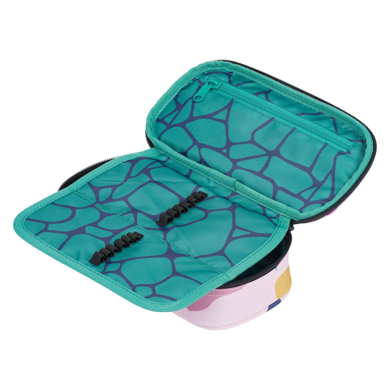 • Kompaktowy piórnik na zamek błyskawiczny z pojemną główną komorą i podwójną, rozkładaną klapką oferuje dużo miejsca na przybory do pisania oraz drobiazgi.
