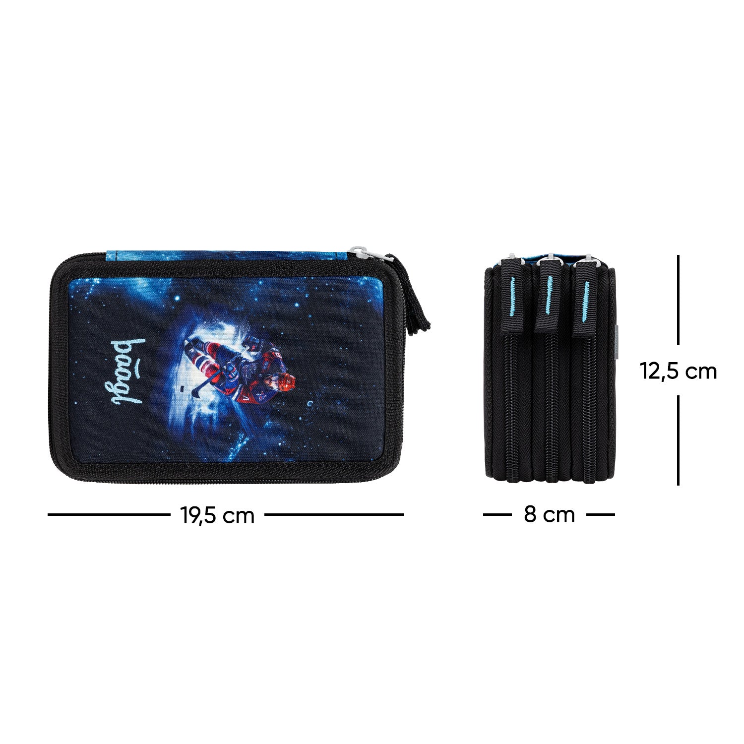 • Ekstra pojemny trzykomorowy piórnik na wszystkie przybory do pisania.