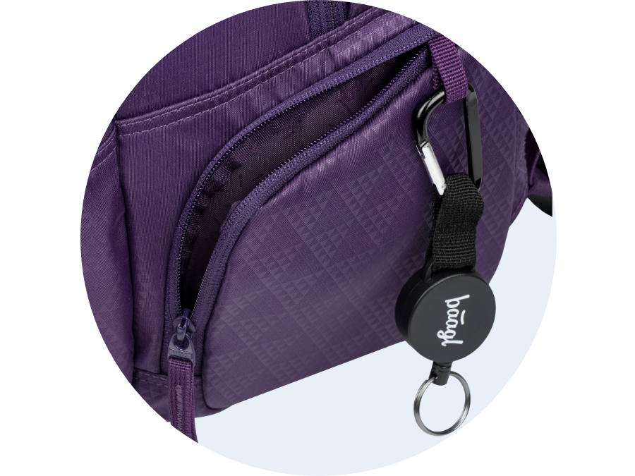• Specjalna kieszeń z automatycznym systemem zwijania na klucze lub kartę dostępu.
