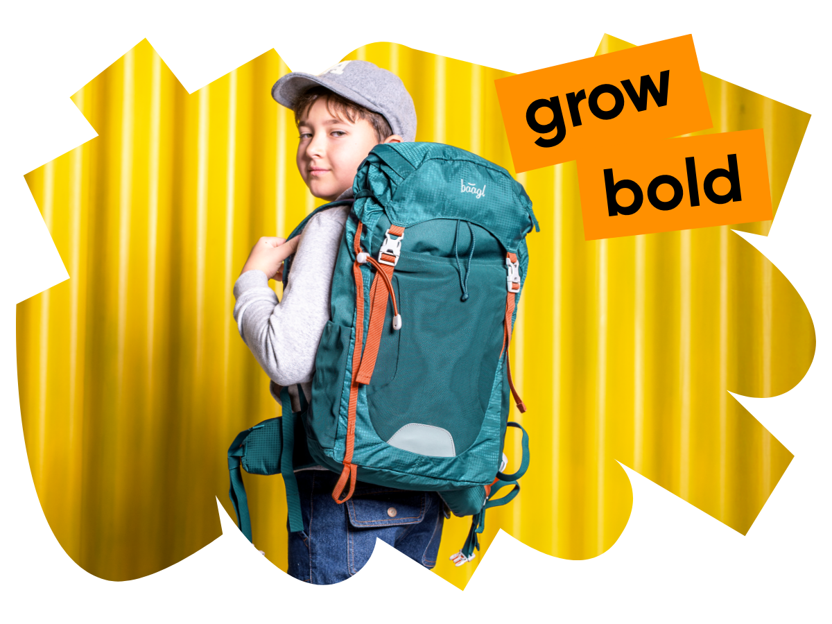 Niebieski plecak outdoorowy Tracker z logo BAAGL i żółtymi paskami jest odpowiedni dla dzieci od 3. klasy szkoły podstawowej. Idealny towarzysz na wycieczki, wędrówki i do szkoły.
