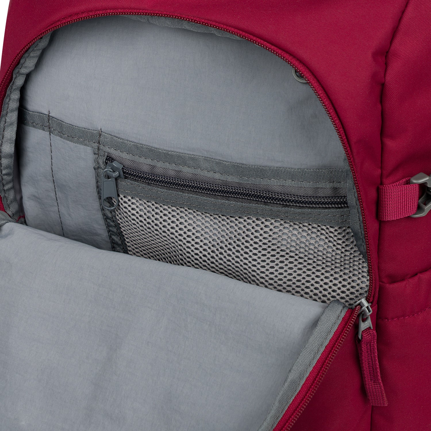 • Elementy funkcjonalne w ponadczasowym designie, takie jak zintegrowana kieszeń na laptop i okulary, pasek do mocowania na walizkę oraz karabińczyk na klucze.