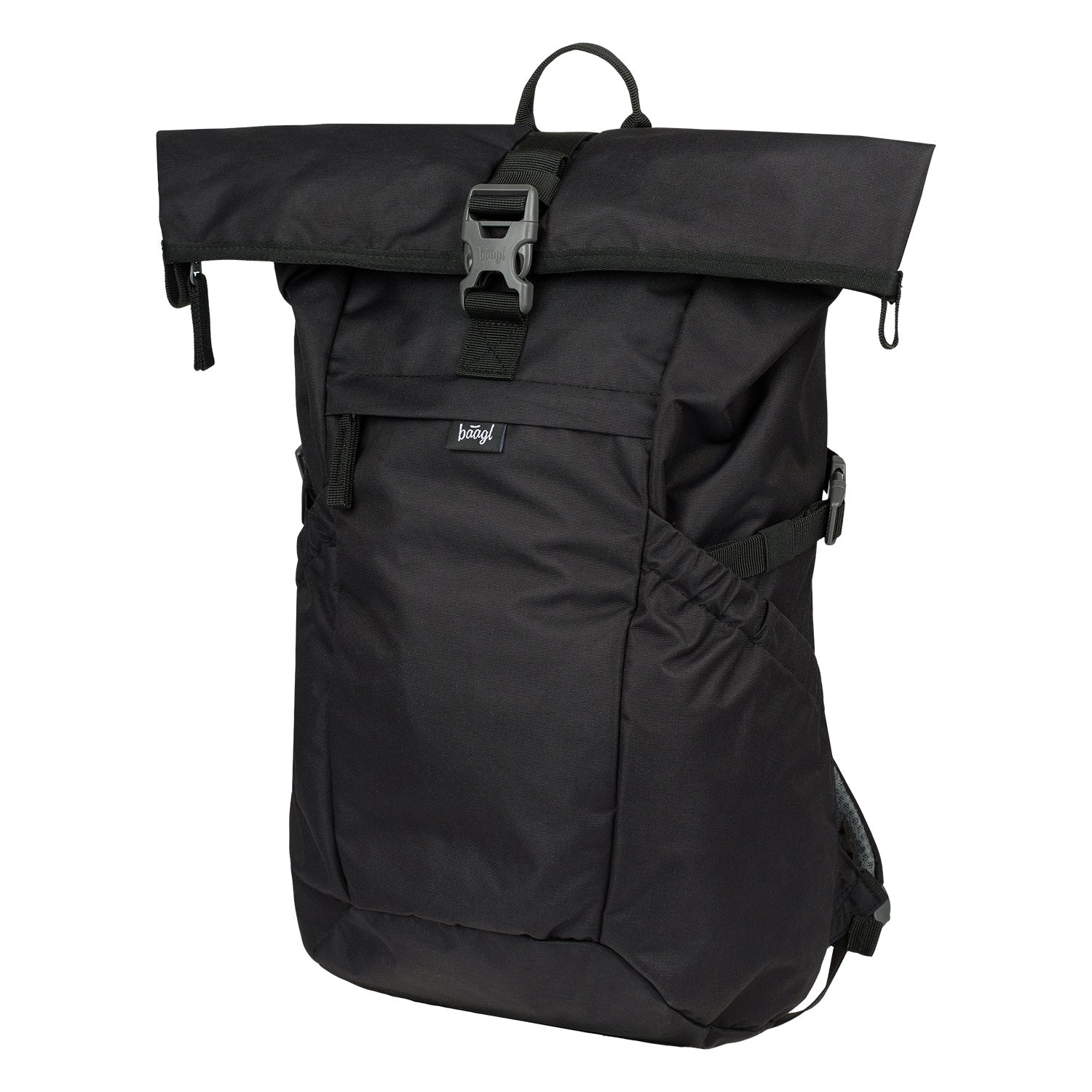 Czarny miejski plecak Roll z wzmocnionym plecakiem i markowymi zamkami YKK jest niezawodnym towarzyszem do codziennego noszenia, sportu i turystyki.