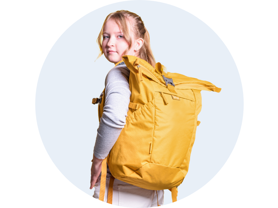 • Designerski plecak rolowany o niskiej wadze 715 g i wzmocnionych plecach jest idealny dla uczniów drugiego stopnia szkoły podstawowej, studentów i dorosłych.