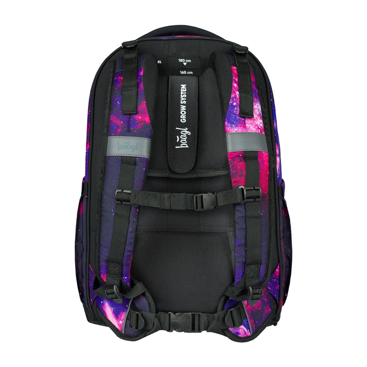 Nadprzyrodzenie wyjątkowy plecak szkolny Skate Max z logo BAAGL, regulowanym systemem pleców i paskami do przypięcia deskorolki. Jest odpowiedni dla uczniów od 3. klasy szkoły podstawowej.
