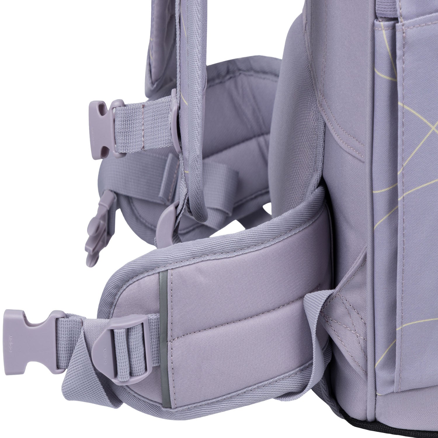 • W miejscach, gdzie paski naramienne mogą stykać się z szyją, dolna warstwa z miękkiej siatki jest lekko podciągnięta do górnej części, co zapewnia ochronę szyi.