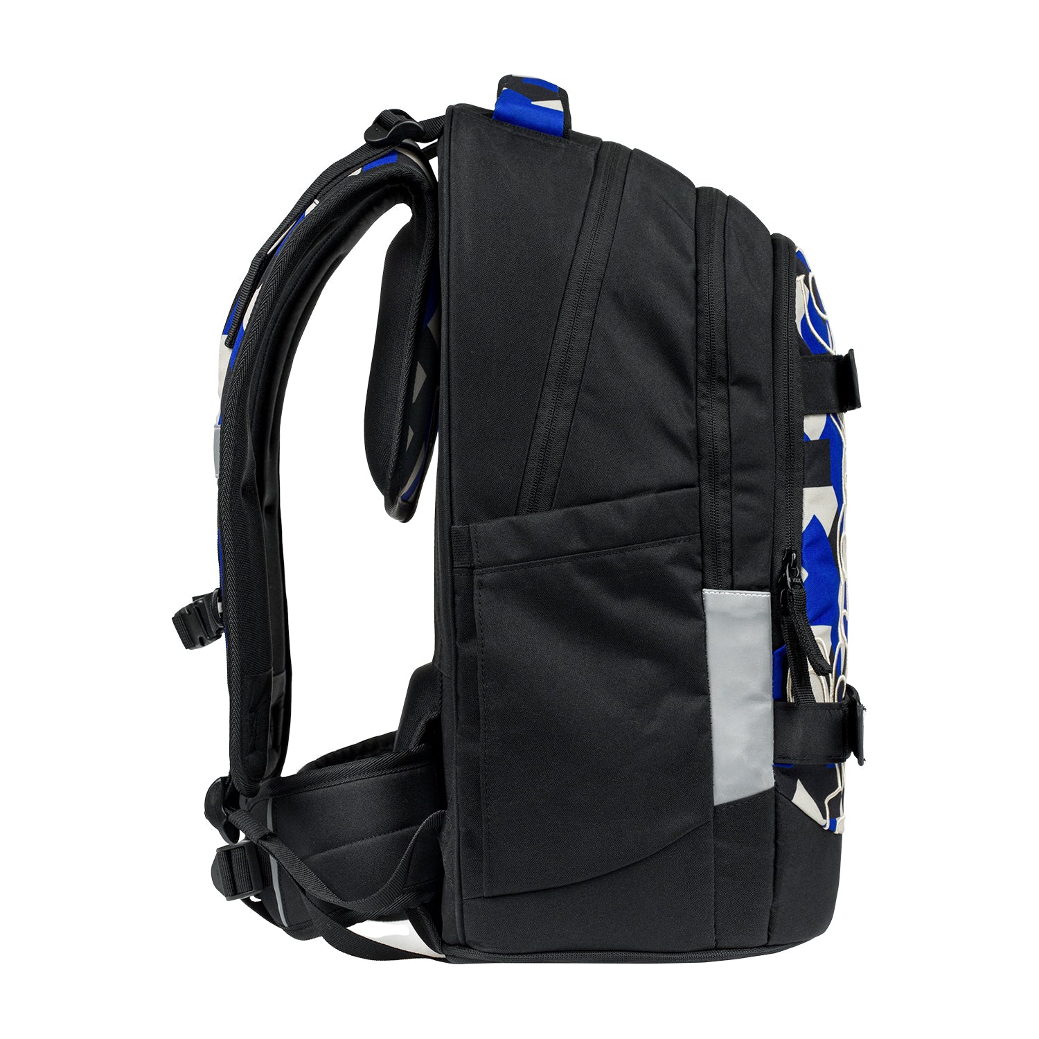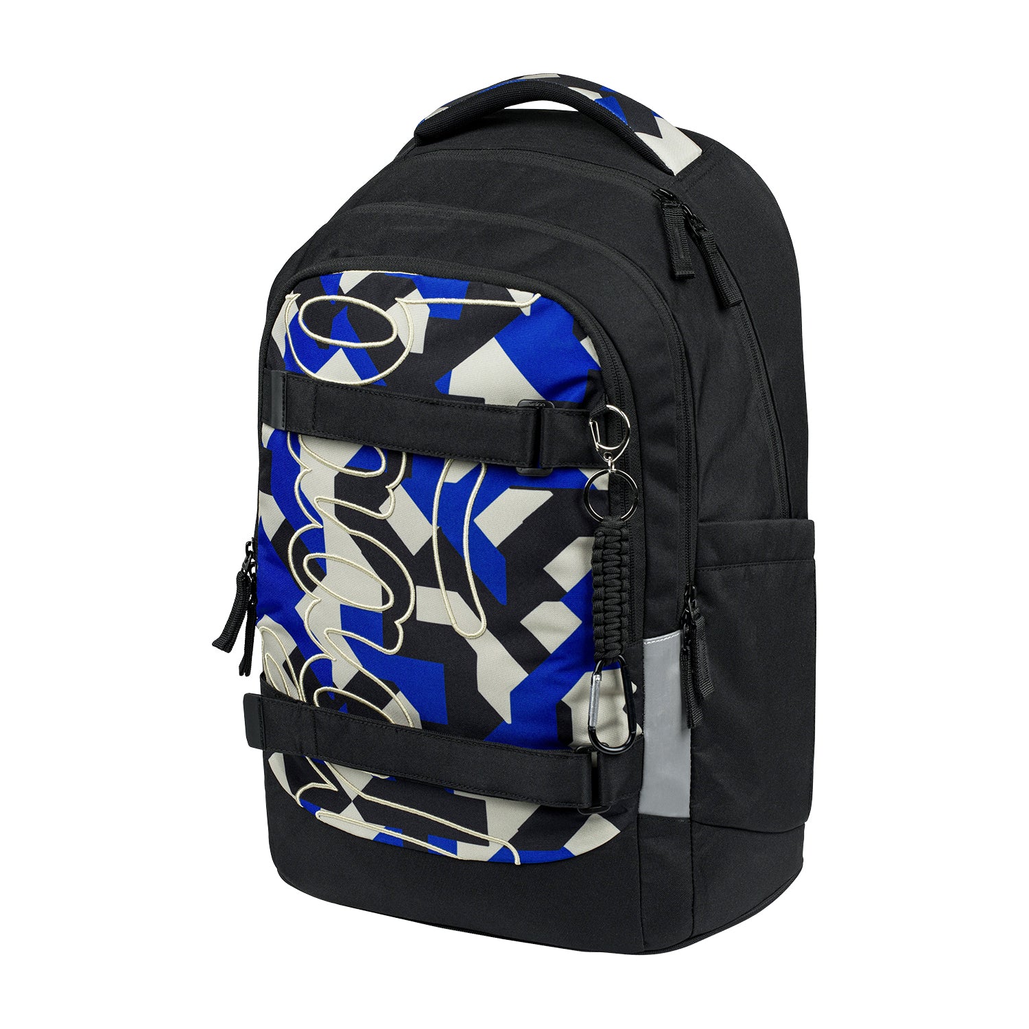 Ergonomiczny plecak szkolny Skate z paskami do mocowania deskorolki został wyposażony w regulowany system pleców z możliwością regulacji w czterech rozmiarach. Oferuje trzy pojemne komory, aksamitną kieszeń na laptop oraz solidną konstrukcję z pianki EVA, która chroni zawartość i zapewnia stabilny kształt.