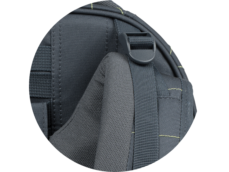 • Wzmocniony uchwyt plecaka zwiększa jego nośność aż do 8 kg.