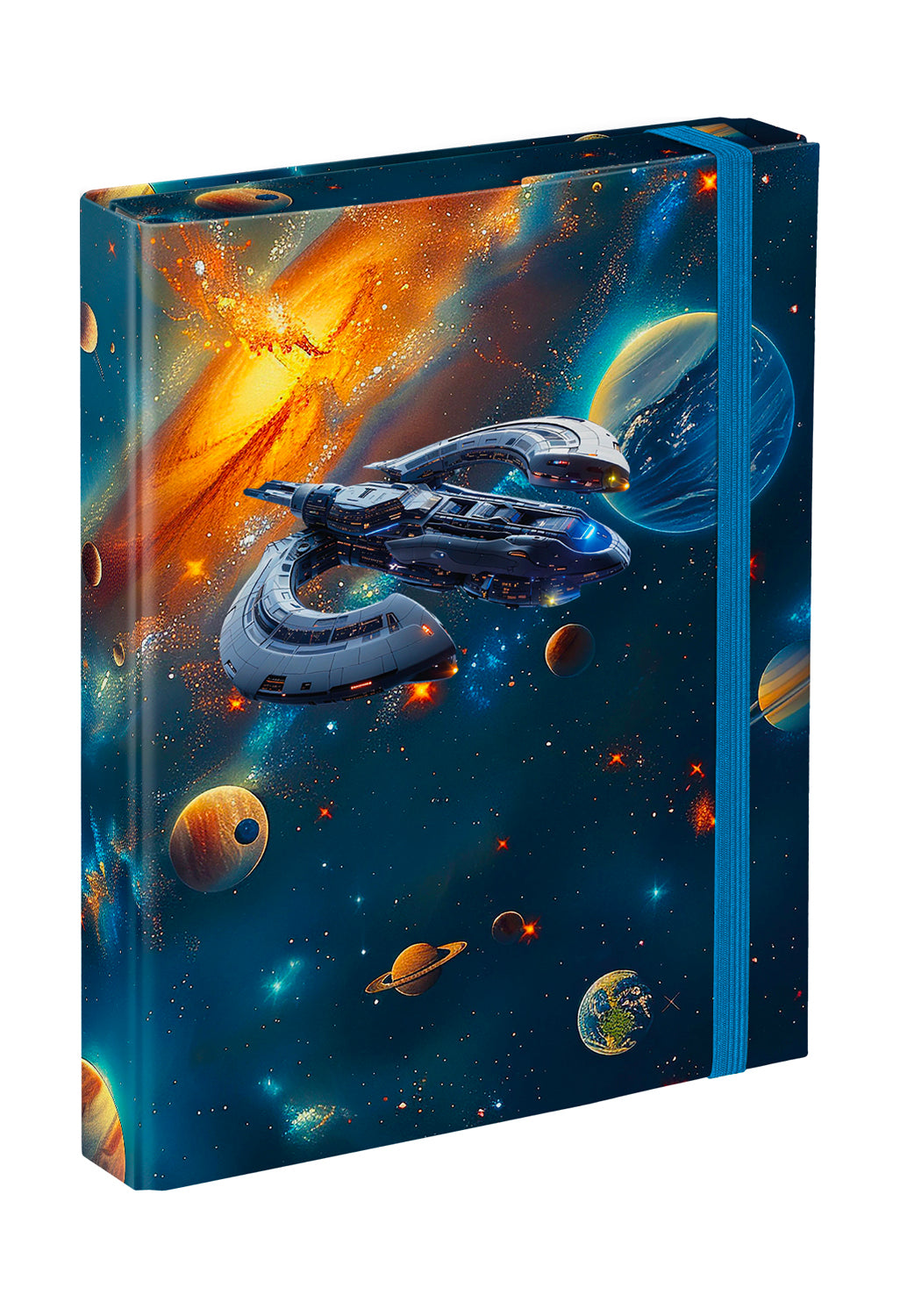 Teczka na zeszyty z motywem kosmosu dosłownie wystrzeli Cię na orbitę! Idealna do przechowywania zeszytów w formacie A5.