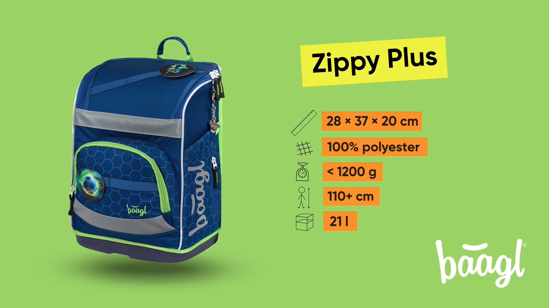 • Zippy Plus jest wyposażony w odpinany pas biodrowy, przejrzysty organizer wewnętrzny oraz specjalną termiczną kieszeń na drugie śniadanie.