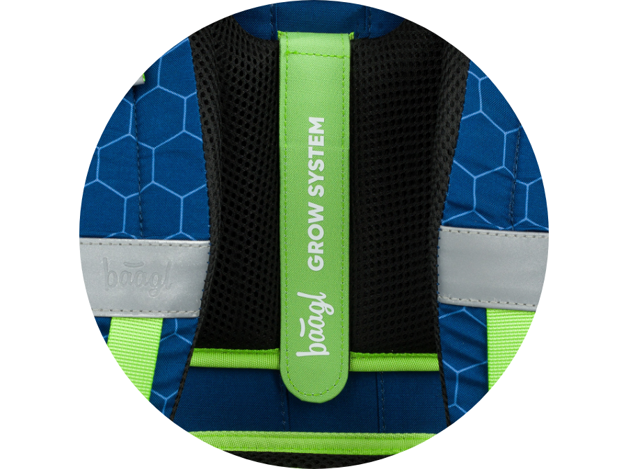 • Regulowany system nośny umożliwia dostosowanie tornistra do trzech różnych rozmiarów, dzięki czemu „rośnie” razem z dzieckiem.