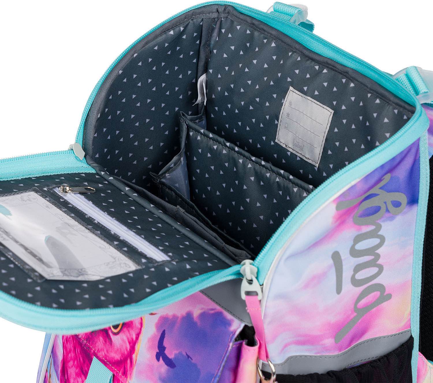 • Unikalny system wymiennych odznak pozwala dostosować wygląd tornistra do nastroju i zainteresowań dziecka.