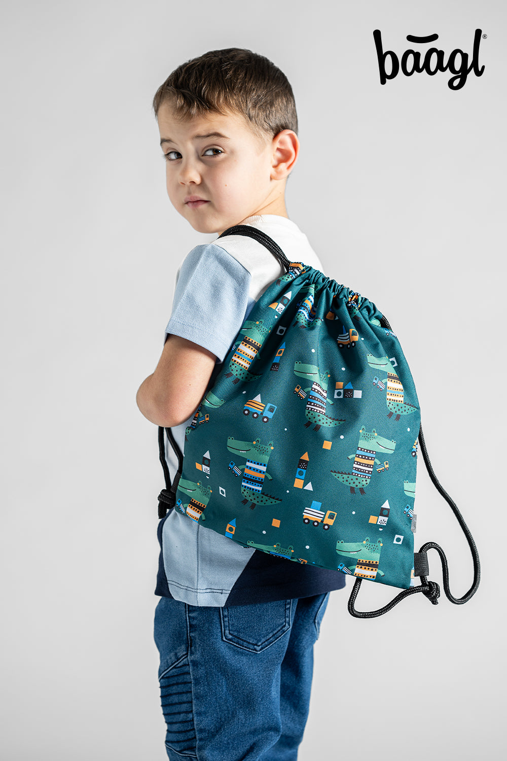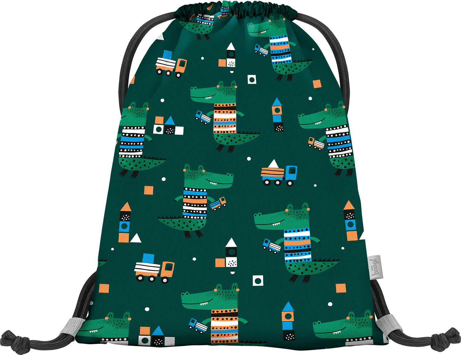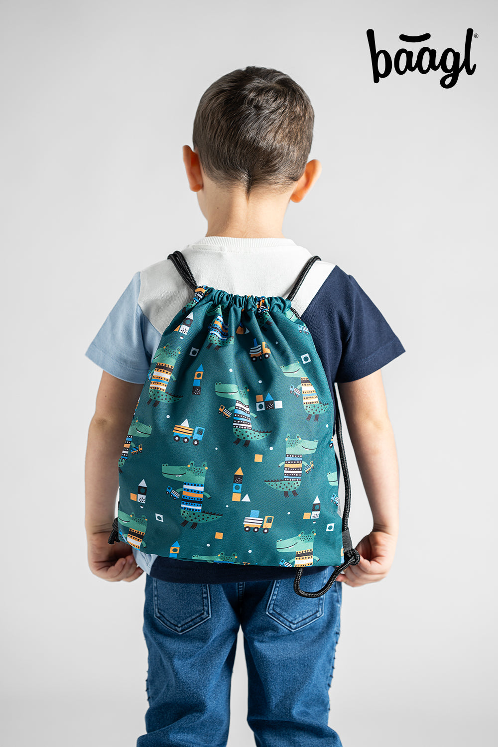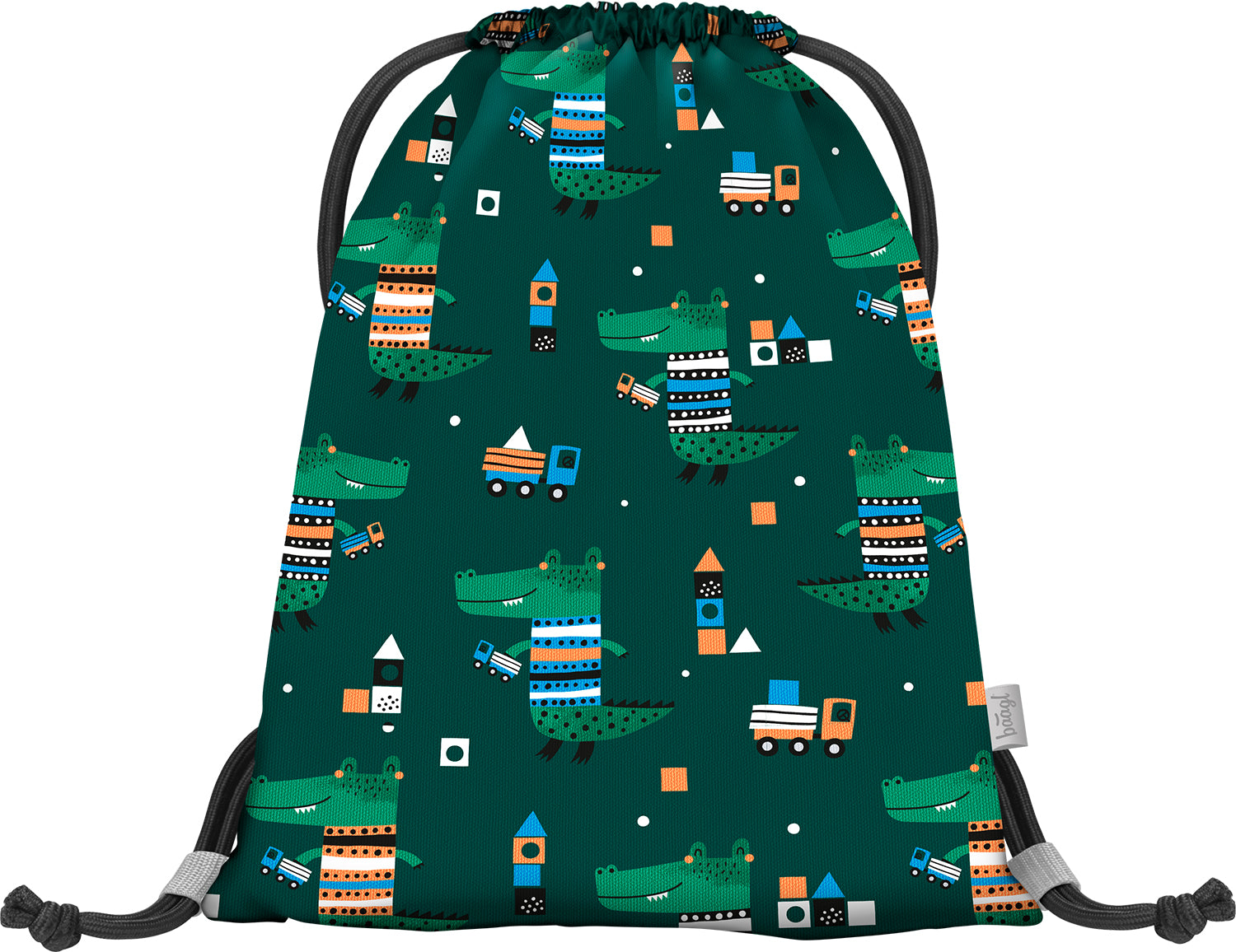 Worek na obuwie w zielonym kolorze z motywem uroczych krokodyli.