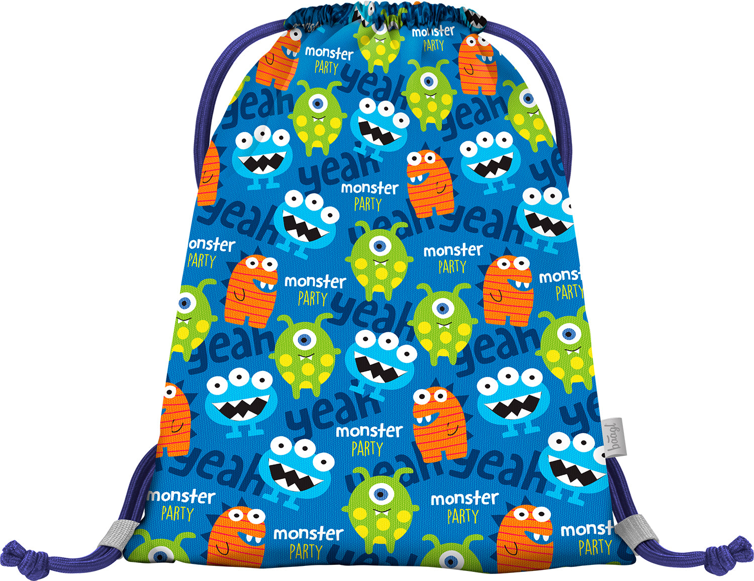 Worek na buty lub kapcie z wesołymi potworami, przeznaczony dla dzieci w wieku przedszkolnym.