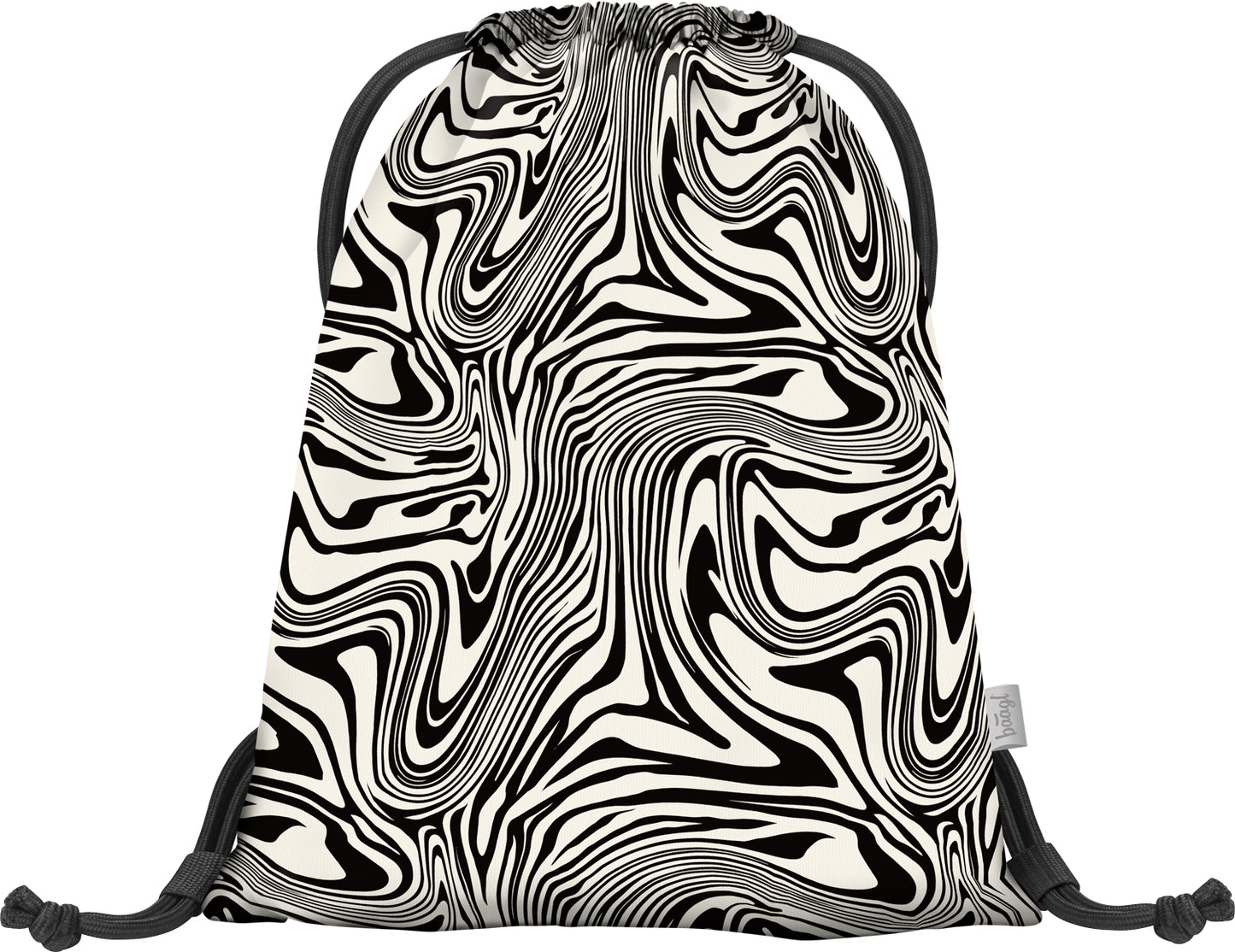 Worek na buty i przybory gimnastyczne w abstrakcyjnym czarno-białym designie, odpowiedni zarówno dla chłopców, jak i dziewcząt.