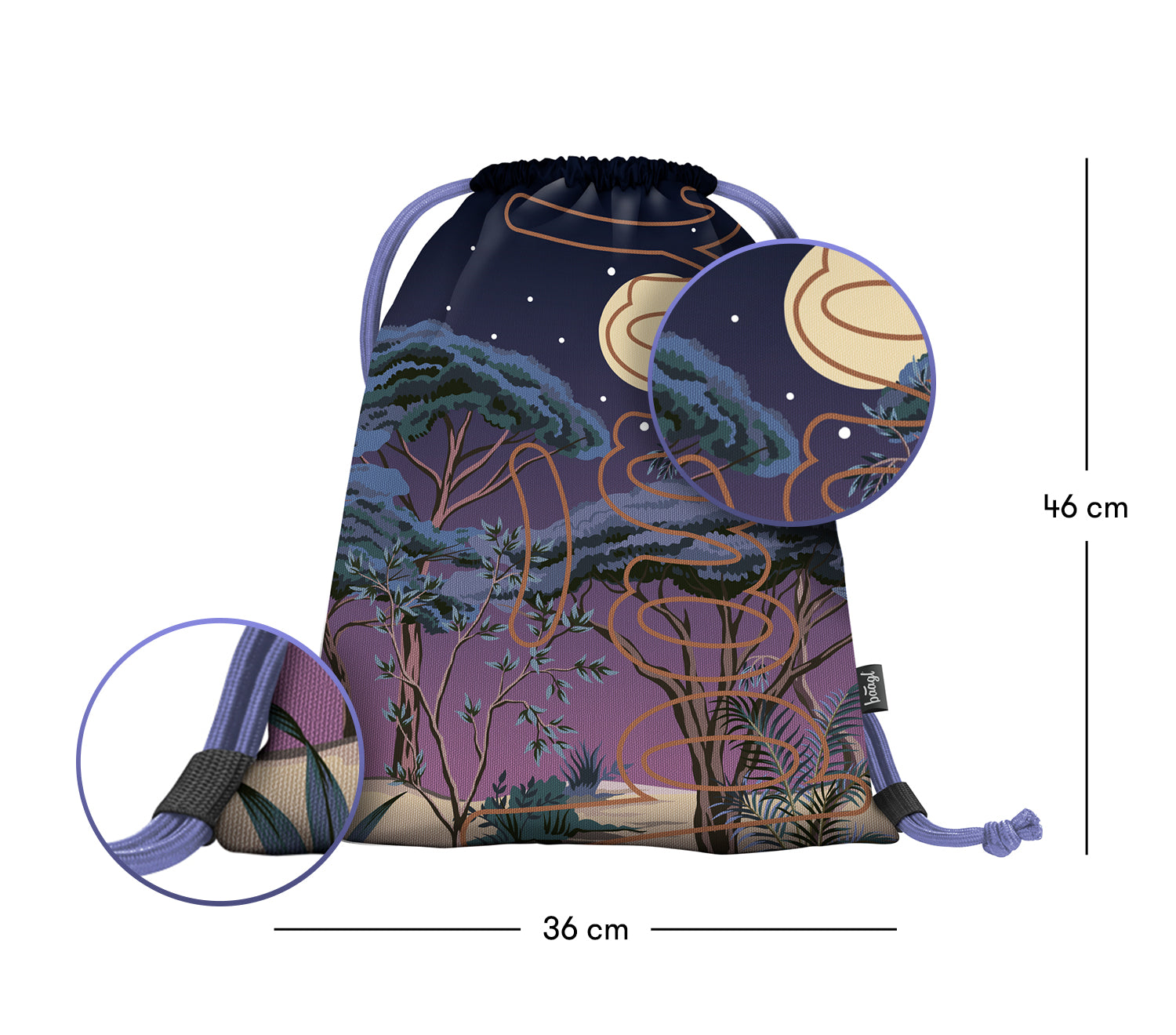 Worek na obuwie i akcesoria gimnastyczne z motywem pełni księżyca i ciemnej nocnej prerii.