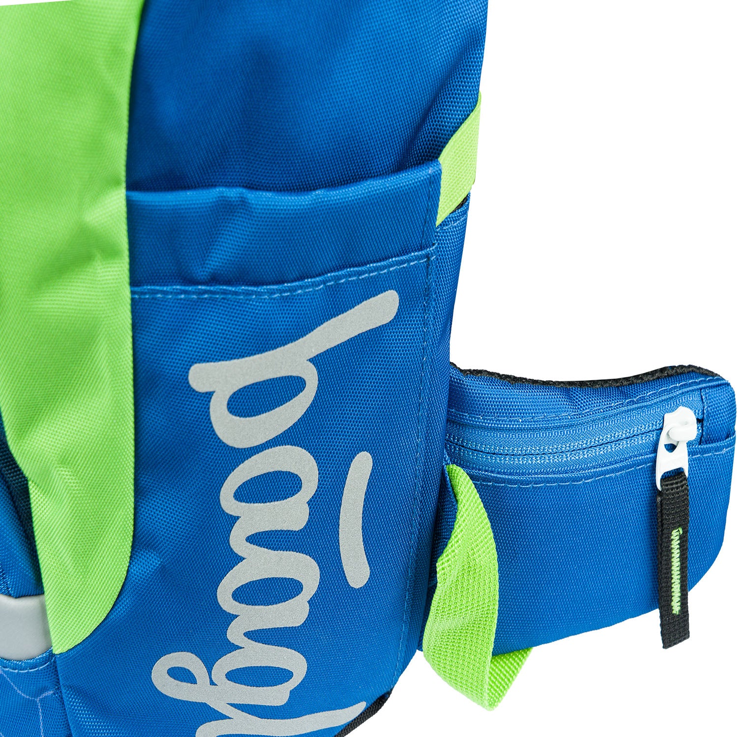 • Plecak wykonany z materiału pochodzącego z recyklingu, o właściwościach wodoodpornych, został wyposażony w liczne elementy odblaskowe, zapewniające maksymalne bezpieczeństwo dziecka również przy słabej widoczności.