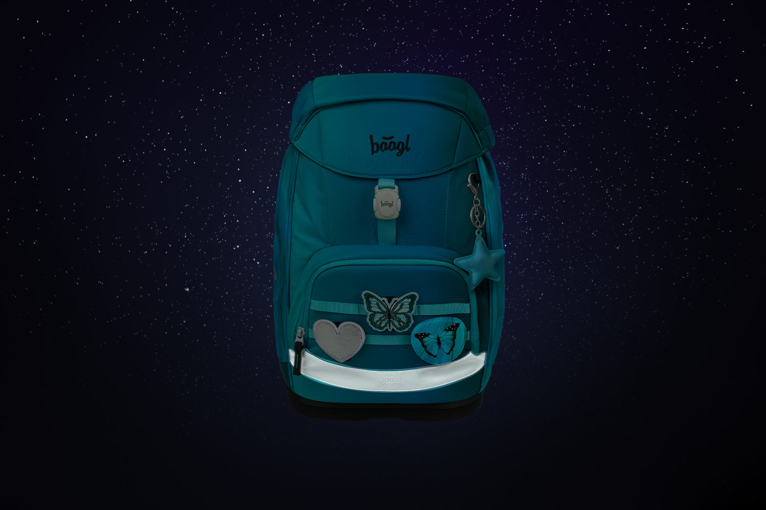 Niebieski zestaw szkolny złożony z ultralekkiego plecaka Airy, klasycznego piórnika oraz worka na obuwie z motywem motylka to idealny wybór dla dzieci od 1 klasy szkoły podstawowej.