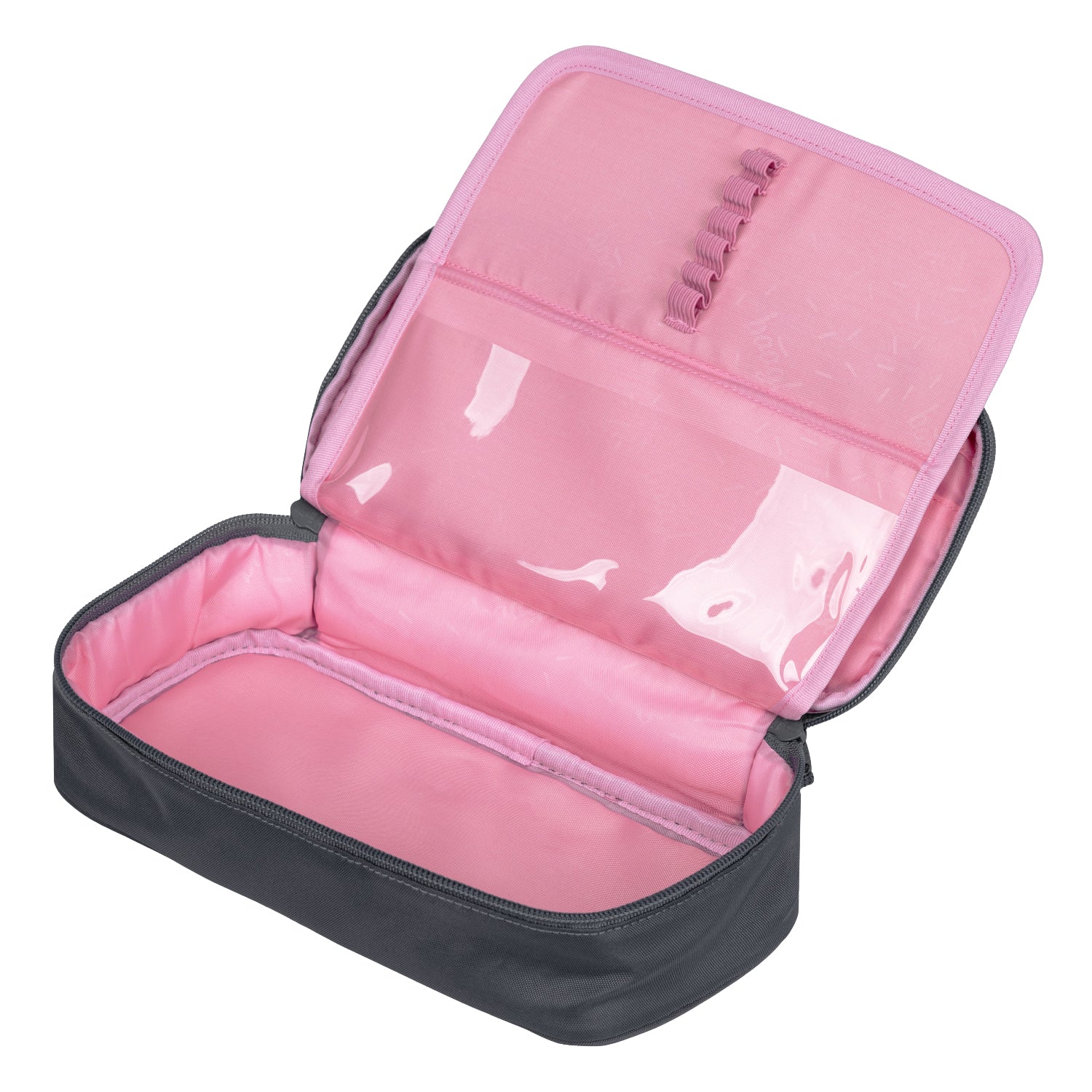 • Kompaktowy piórnik na zamek błyskawiczny z pojemną główną komorą i podwójną, rozkładaną klapką oferuje dużo miejsca na przybory do pisania oraz drobiazgi.