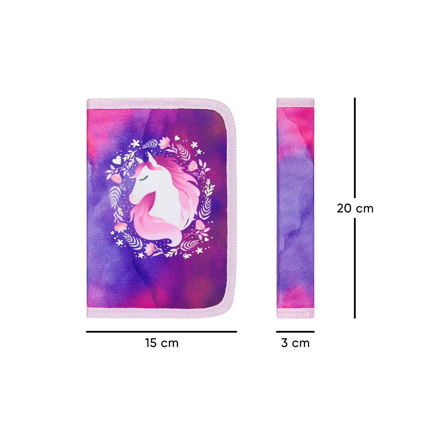 Fioletowy zestaw szkolny dla wszystkich miłośniczek koni. Znajdziesz w nim wszystko, co potrzebne przyszłym pierwszoklasistkom – tornister ERGO, piórnik i worek.