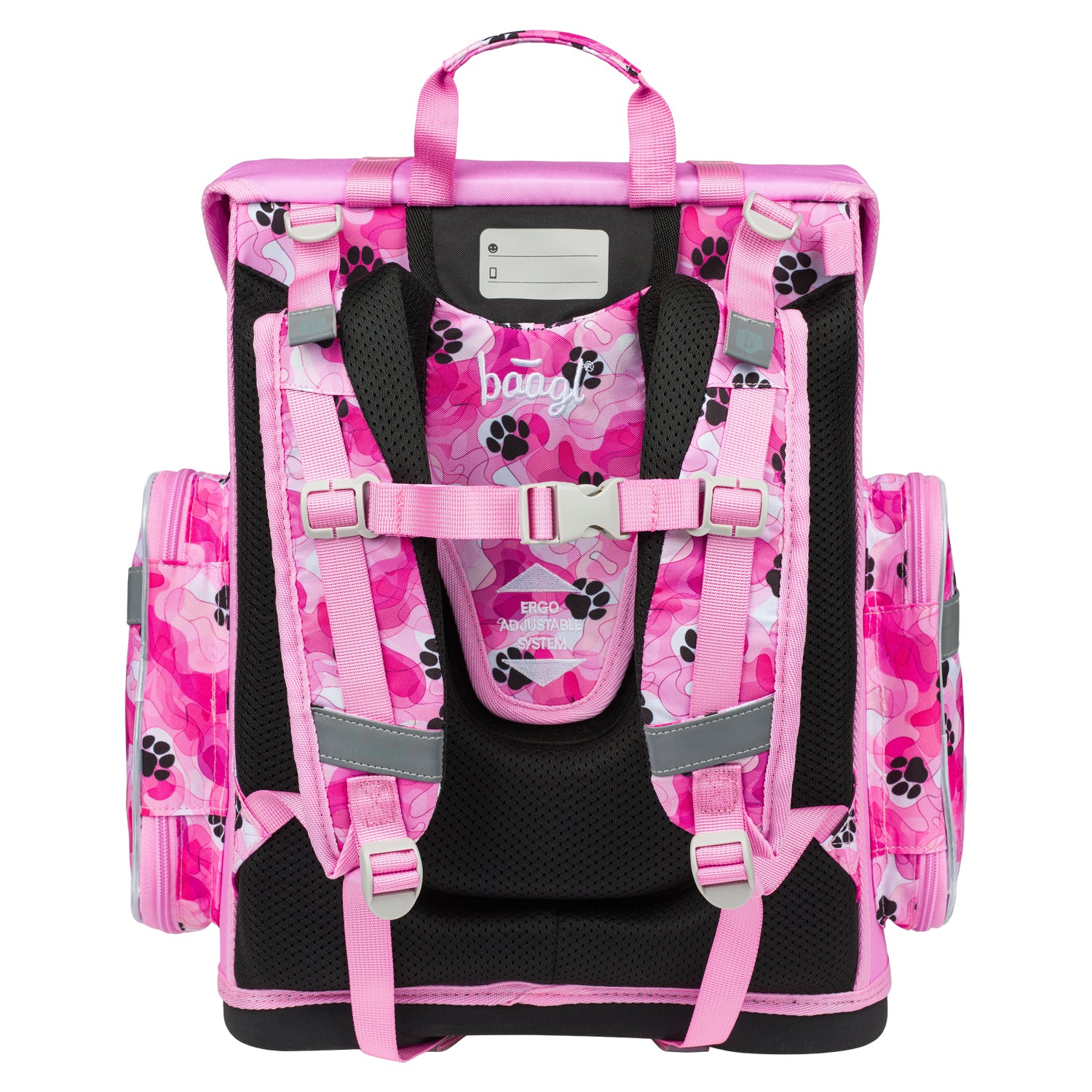 Zestaw składający się z tornistra ERGO z intuicyjnym zapięciem FIDLOCK, klasycznego piórnika oraz worka na obuwie z motywem uroczej buldogi.