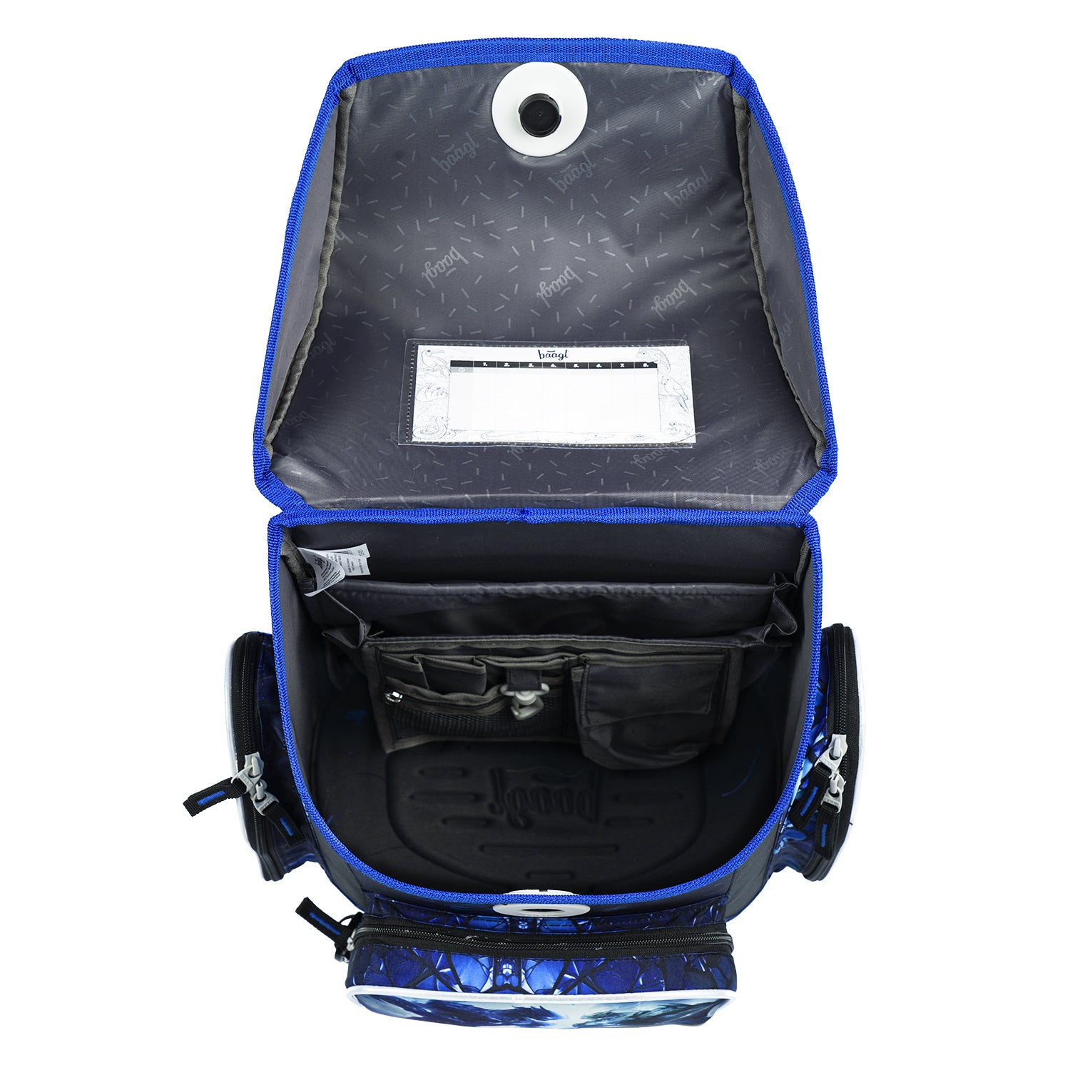 • Wewnątrz znajduje się kieszonka na drobiazgi oraz okienko na plan lekcji.