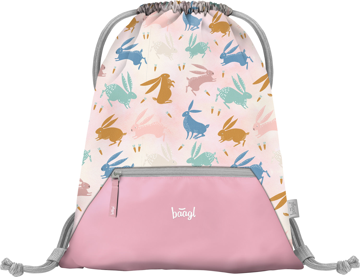 Dziewczęcy zestaw szkolny Zippy Bunny z pluszową powierzchnią. Zestaw zawiera tornister z serii Zippy, klasyczny piórnik oraz worek na obuwie.