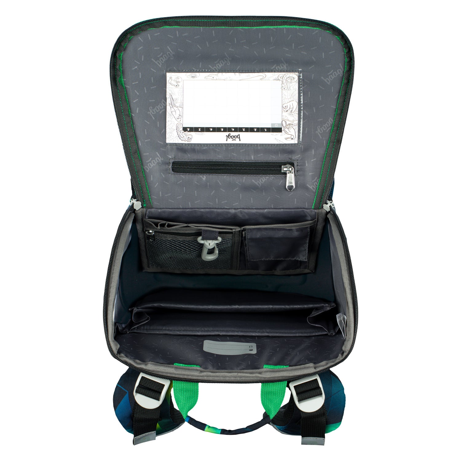 • Wewnątrz znajduje się kieszonka na drobiazgi oraz okienko na plan lekcji.