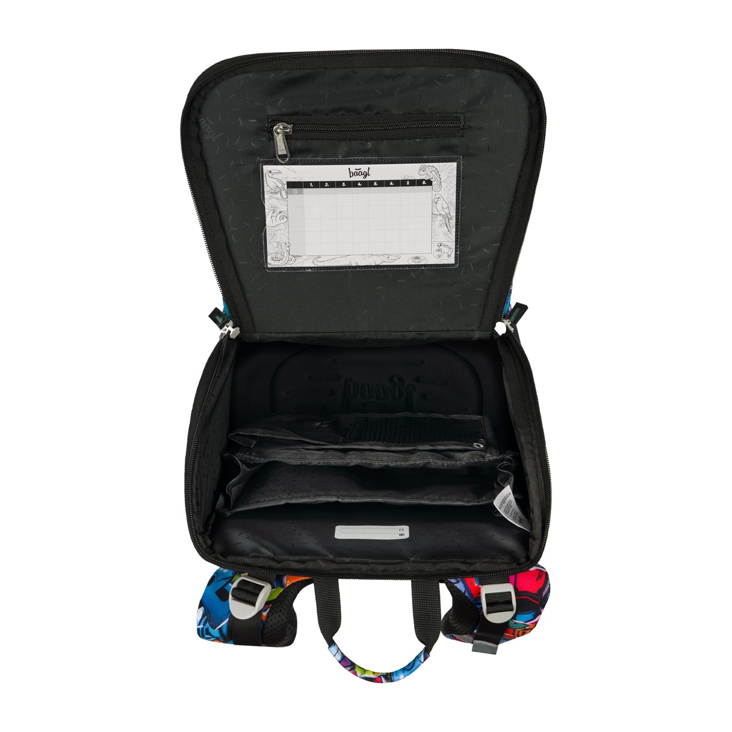 • Wewnątrz znajduje się kieszonka na drobiazgi oraz okienko na plan lekcji.